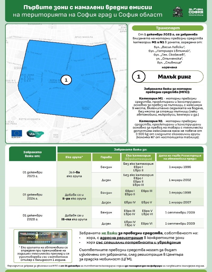 Нискоемисионната зона (НЕЗ) за автомобили в София влиза в сила от днес – 1 декември 2023 г. и ще е валидна до 29 февруари 2024 г. Зоната се въвежда в т.нар. „малък ринг“, който обхваща бул. “Васил Левски”, бул. “Патриарх Евтимий”, бул. “Ген. Скобелев”, ул. “Опълченска” и бул. “Сливница”.